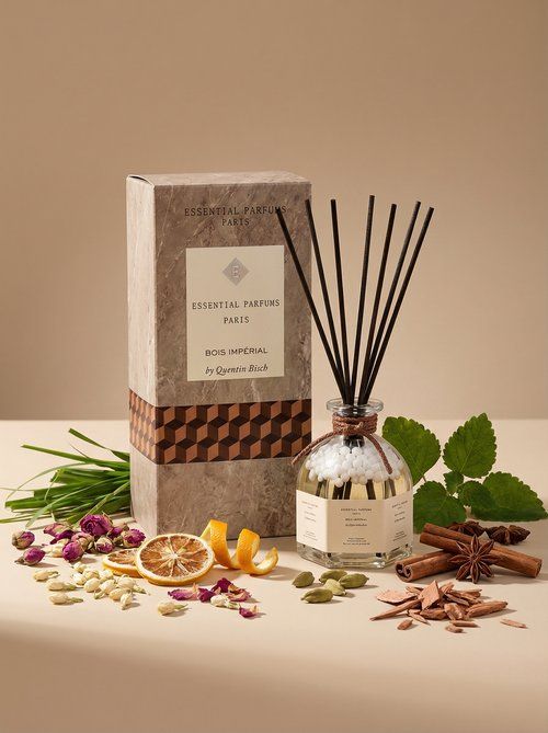 Элегантный аромадиффузор «Bois Impérial» от Essential Parfums Paris превратит ваш дом в пространство изысканности и природной гармонии. Стильный дизайн упаковки и флакона подчёркивает премиальность продукта.